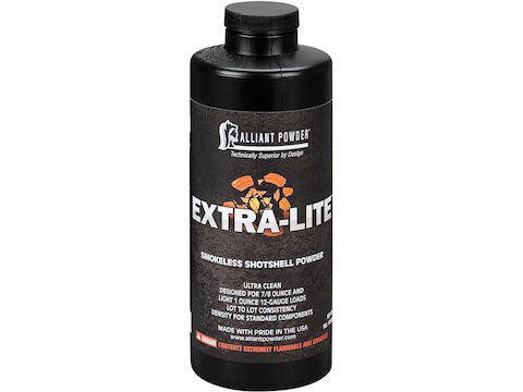 Alliant Extra Lite Smokeless Gun Powder is designed for shooters and reloaders who want dependable performance and consistent results when loading shotgun shells. Developed with a clean‑burning formula, this powder delivers reliable ignition and uniform patterns, making it a popular choice for target shooting, clay sports, and frequent range practice.